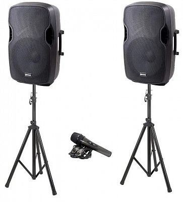 • Двух 15” дюймовых активных АС в пластиковом корпусе.
