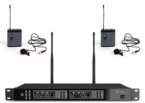 FBW A2D-PRESENTER радиосистема, комплект из диверситивного приёмника A220R и двух передатчиков A100BT с петличным микрофоном, 512-562МГц, FM-модуляция, 2/10/30мВт, 3 уровня Squelch, индикация батареи, 50Гц-15кГц