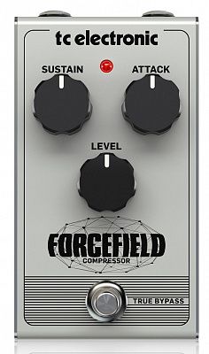 FORCEFIELD COMPRESSOR, способна на широкий диапазон динамической выразительности, и обладает простой в использовании схемой управления, включающей: Sustain — задающей степень компрессии сигнала; Attack — скорость применения компрессии; и Level, который устанавливает выходную громкость для компенсации потери усиления или для использования FORCEFIELD COMPRESSOR в качестве соло бустера. Нет ничего проще!
