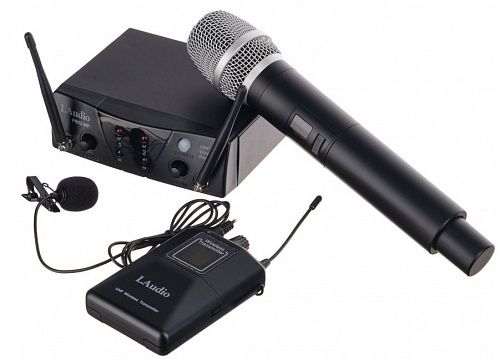 Двухканальная радиосистема с ручным передатчиком и петличкой.