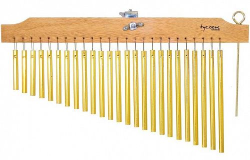 Бар Чаймс TYCOON TIM-25 G состоит из ряда полых алюминиевых брусков (чаймсов) анодированных золотом разной длинны, закрепленных на основании. Основание чимеса выполнено из дуба.