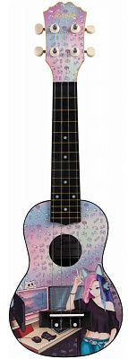 Укулеле TERRIS PLUS 70 GAMER GIRL - модель для модных и увлекающихся натур. Компьютерные игры, котики и яркие волосы – сложный принт на розово-голубом фоне – только для девчонок!