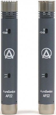 Модель AuraSonics AP22-MP является подобранной парой из двух студийных инструментальных микрофонов высшего класса с конденсаторным капсюлем 22 мм. Рабочая мембрана выполнена из майлара с напылением золотом 24K (999) толщиной 6 микрон. Корпус сделан из латуни и покрыт диэлектрической краской. Капсюль микрофона имеет кардиоидную характеристику направленности, то есть требует правильного положения микрофона перед исполнителем. Основное направление для снятия звука находится по оси корпуса микрофона со стороны капсюля.