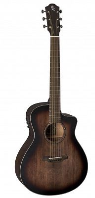 BATON ROUGE X11LS/FCE-W-AB – электроакустическая гитара в корпусе типа фолк с вырезом. Верхняя дека выполнена из ели, задняя дека и обечайки – из красного дерева. Данное сочетание материалов делает тембр гитары ярким и звонким. Гриф также сделан из красного дерева, накладка на гриф и сам бридж – из овангкола. У гитары 21 лад, а верхний и нижний порожек (48 мм) выполнены из материала Nubone: упрощенная разновидность материала TUSQ, которая лучше гасит вибрацию струн, лучше передает частоты и гармоники, увеличивает объем звука и обогащает тон.