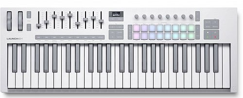 Launchkey 49 White — это мощный DAW контроллер в элегантном и современном дизайне. Он оснащен 49 полувзвешенными белыми и серыми клавишами waterfall-стиля, восемью энкодерами, девятью фейдерами и 16 чувствительными к скорости нажатия пэдами ударных, инструментов и запуском клипов. Кроме того, режимы Chord и Scale работают с OLED-дисплеем, чтобы вы всегда были в курсе событий.