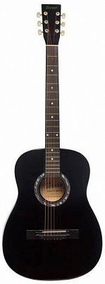 Акустическая гитара • Форма корпуса: фолк • Верхняя дека: липа • Задняя дека и обечайка: липа • Гриф c анкерным стержнем • Накладка грифа: крашеный клен • Бридж: крашеный клен • Цвет: черный
