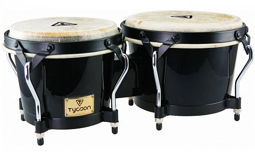 TYCOON STB-B - Бонго размера 7" x 8.5" изготовлены из сиамского дуба и имеют натуральную мембрану из кожи буйвола, цвет черный, бонго оснащены стальной фурнитурой и имеют специальные нескользящие ножки с резиновыми накладками.