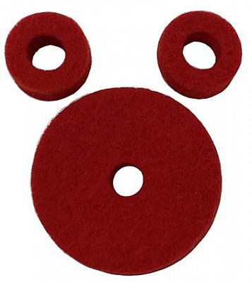 Набор фетровых шайб для хай-хета красного цвета. • Используется на стойке для тарелок хай-хэт • Две маленьких шайбы (для замка) и одна большая (для чашки)
