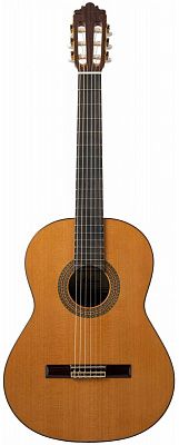 Инструмент выполнен вручную полностью из массива. Верхняя дека выполнена из массива кедра, а нижняя дека и обечайки из массива африканского красного дерева. Звучание глубокое, смелое и отлично подходит для современного репертуара.
