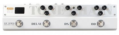 JOYO TONE CHAIN - процессор с эффектами дисторшн, овердрайв, дилей(с функцией TAP TEMPO), эмуляцией кабинета, тюнером, поддержкой петли эффектов. У TONE CHAIN есть стерео и балансный выходы, что делает расширяет границы возможностей эксплуатации.