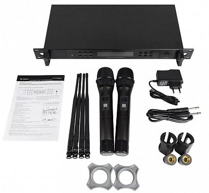 Тип: высококачественная беспроводная система True Diversity профессионального уровня с DSP и установкой в рэк, состоящая из двух микрофонов и двухканального приемника