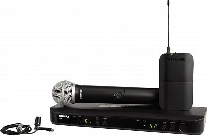 Тип: Двухканальная радиосистема с ручным микрофоном PG58, поясным передатчиком BLX1 и петличным микрофоном CVL