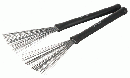 Lutner SV503 - это металлические щетки для барабана, выполненные в серебристых и черных цветах. Щетки обладают резиновыми ручками и регулируемой длиной проволоки. В упаковке 2 щетки.