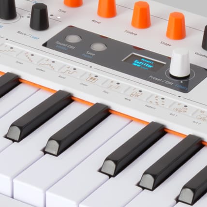 Клавиатура: 37-нотная клавиатура Slim-Key с чувствительностью к скорости нажатия и послекасанием