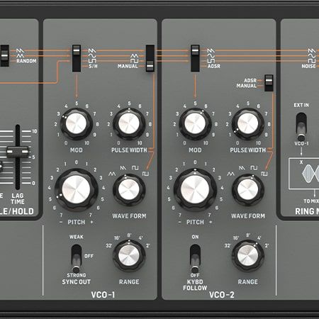 • Чисто аналоговый тракт сигнала, основанный на аутентичных конструкциях VCO, VCF и VCA