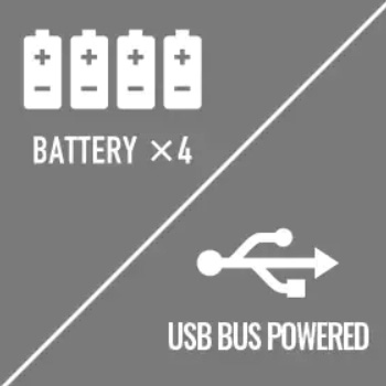 • Питание от батареек и разъема USB (USB-адаптер продается отдельно)
