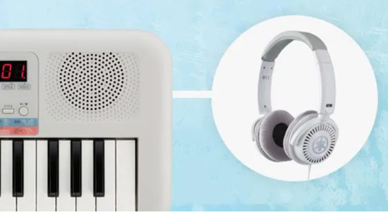 Встроенный динамик включен по умолчанию, но после подключения наушников (продаются отдельно) ваш юный музыкант сможет погрузиться в волшебный мир музыки, не беспокоя при этом домочадцев.