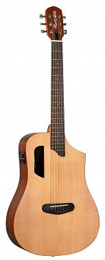 Трансакустическая гитара с обновленной формой корпуса и головки грифа. В комплекте чехол толщиной 15 мм, черный ремень и 3 медиатора.