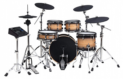 • Том барабаны: 2х деревянный корпус 10х7", 1х деревянный корпус 12х12", сетчатые пластики (2 зоны)