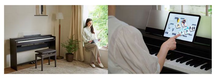 С помощью специального приложения «CASIO MUSIC SPACE» откройте для себя множество функций, которые расширяют возможности графического редактирования функций инструмента и улучшают качество игры на фортепиано.