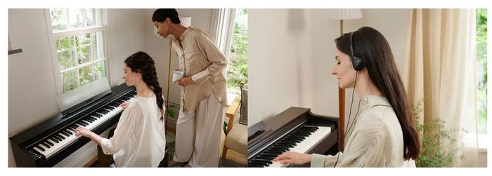 • Эквалайзер «Volume Sync Equalizer» обеспечивает сбалансированное звучание всех частот даже при игре на пианино на пониженной громкости, что идеально подходит для домашней практики в вечернее время или в любые спокойные моменты.