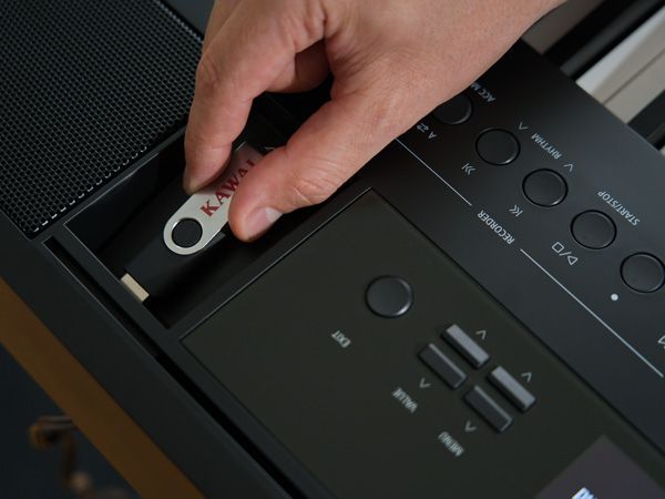 Цифровое пианино ES920 оборудовано портами USB, которые позволяют не только подключать инструмент к компьютеру для использования функций MIDI, но и выгружать и сохранять данные непосредственно на запоминающее USBустройство (флешку). Порт USB to Device позволяет сохранять на USB-устройствах настройки и композиции, записанные во внутреннюю память, или загружать стандартные MIDI-файлы (SMF) из интернета для воспроизведения без использования дополнительного оборудования. Запоминающие USB-устройства также могут использоваться для воспроизведения MP3- или WAV-файлов, позволяя разучивать аккорды или мелодию, либо аккомпанировать любимым композициям. Можно даже сохранять собственное исполнение как MP3- или WAV-файлы для отправки по электронной почте друзьям, для прослушивания на смартфоне или последующего редактирования в музыкальном редакторе.