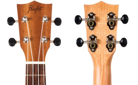 Дизайн головки грифа – неотъемлемый элемент укулеле Flight. Тщательно продуманная головка грифа на всех наших укулеле оснащена колками открытого типа, которые прекрасно держат строй.