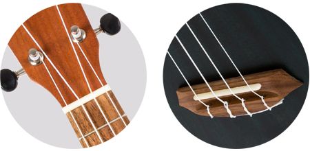 Верхний и нижний порожки, возможно, и не большие элементы укулеле, но они непосредственно влияют на чистоту звучания инструмента. Порожки этой укулеле сделаны из кости (не из пластика). Только одна такая деталь делает эту укулеле поистине уникальной.
