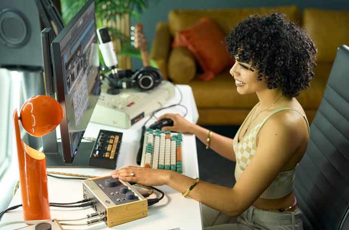 Подключите микрофоны, гитары или синтезаторы к двум микрофонным предусилителям Volt 276 и нажмите на кнопки Vintage, чтобы придать своему голосу или инструменту приятный характер лампового предусилителя UA vintage 610, имитируемого ламповым предусилителем UA vintage. Прямой мониторинг позволяет вам слышать себя без отвлекающих задержек, а для выхода динамика и наушников предусмотрены отдельные регуляторы громкости. У вас есть beat machine или клавиатурный контроллер? Подключите их к 5-контактным портам MIDI на задней панели, чтобы легко интегрировать их в вашу систему.