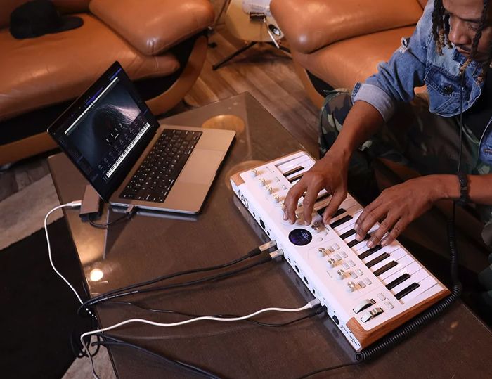 - 37-клавишная узкопрофильная клавиатура — выразительное ощущение от игры, премиальные клавиши с послекасанием.